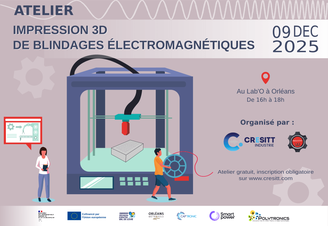Cet atelier montrera comment l’alliance entre de nouveaux matériaux aux propriétés magnétiques spécifiques et l’impression 3D peuvent être utilisés pour réaliser des blindages sur mesure efficaces, grâce aux compétences croisées de l’Industry Lab et du Cresitt.